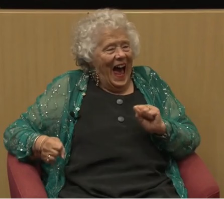 Here she is giving a public lecture in 2014.
