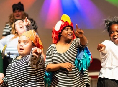 A good old fashioned knees-up on the panto set, just like Joan would h...